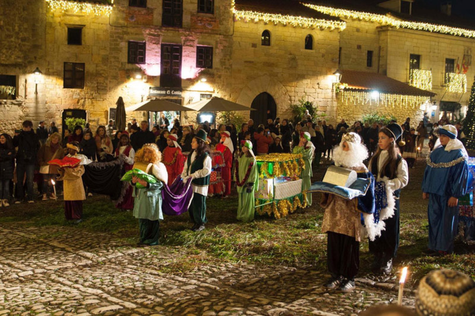 Esta fiesta supone la participación de cerca de 500 personas, ya que la noche del 5 de enero, en Santillana, se dan cita más de 100 antorcheros, 5 carrozas, 20 caballos con sus respectivos jinetes, 10 ponis, así como el personal de cada escena; los pajes; los encargados de atender la caballería; los músicos; así como más personas de apoyo y refuerzo en el desarrollo del evento. De entre todos los figurantes, los personajes que más miradas concentran son sus Majestades los Reyes Magos de Oriente que se pasean por la Villa en camellos.