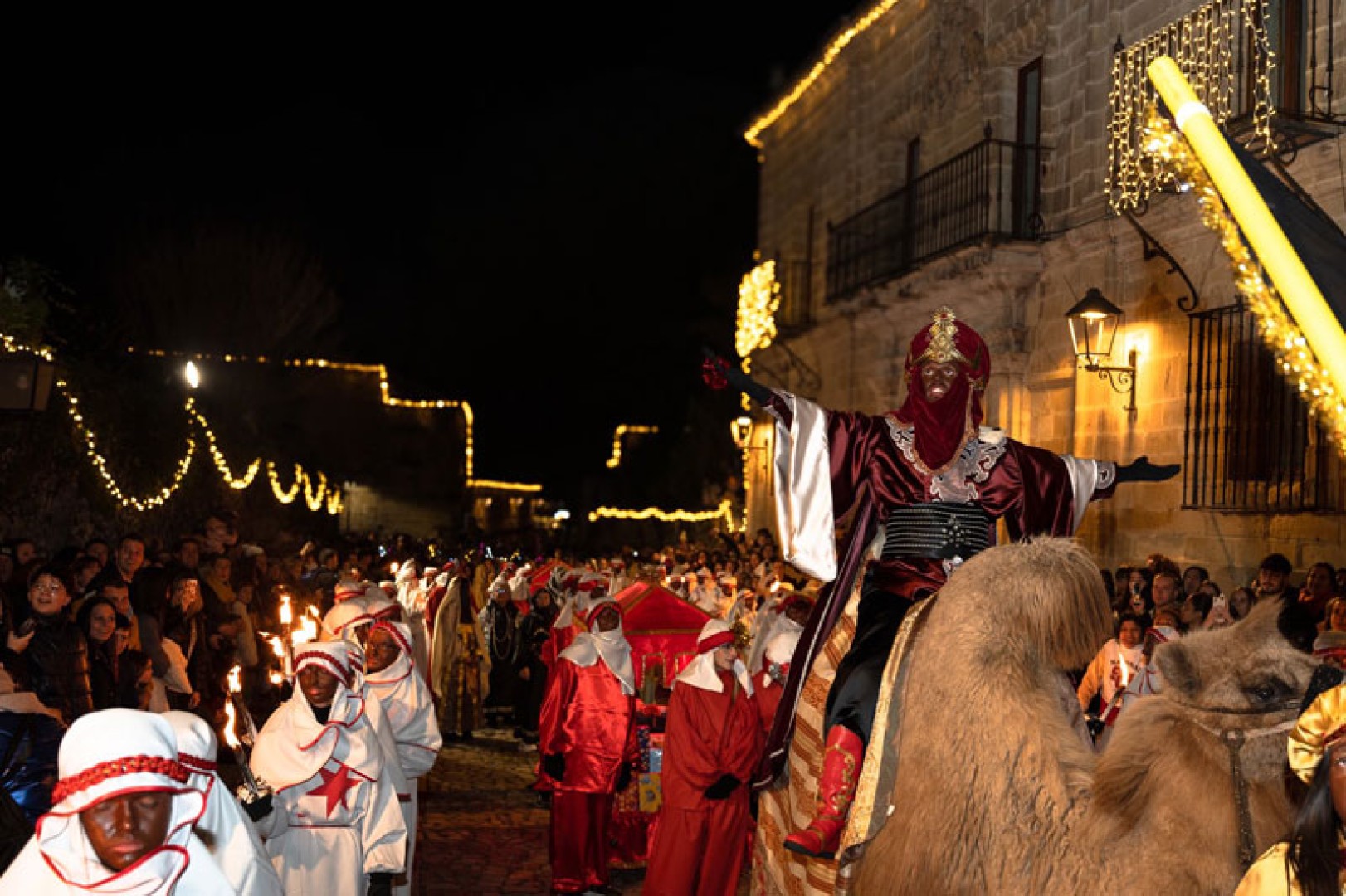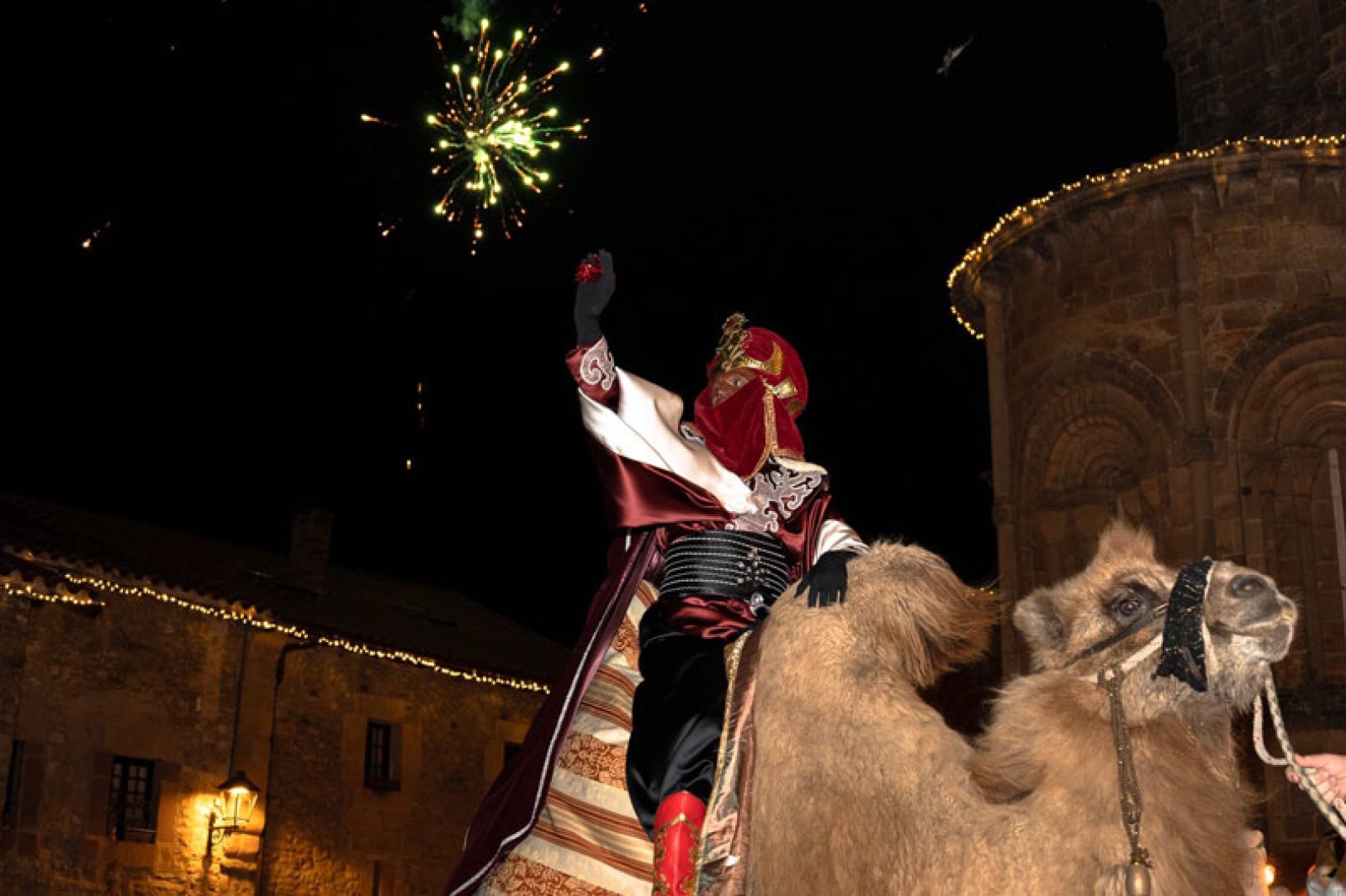 Tras la adoración en la Plaza Mayor suena el 'Aleluya' de Haendel mientras un espectáculo de pirotécnia hace las delicias de todos los asistentes, que esperan ilusionados el último gran momento de la noche, como es del poder acercarse a los Reyes Magos que reciben a los niños en los arcos del portal de la Torre de Don Borja.